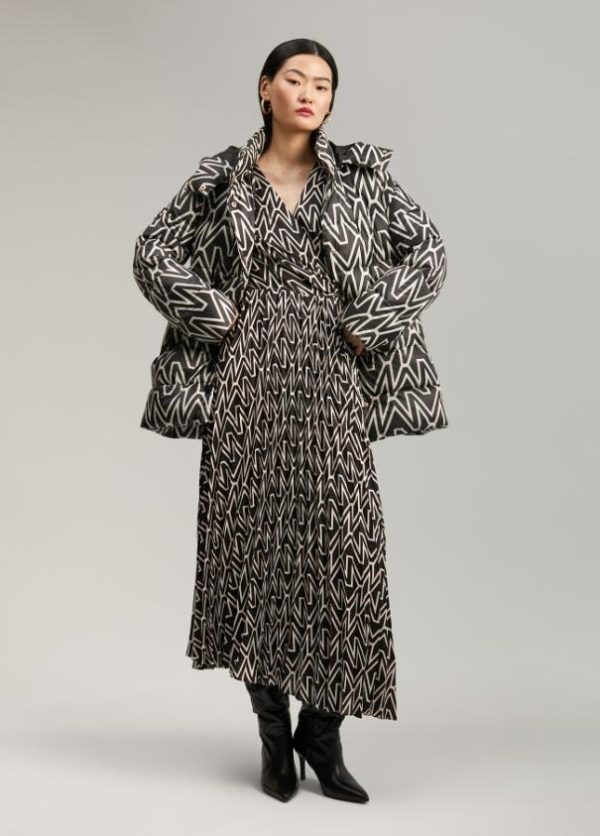 Anorak corto acolchado en estampado monograma M bicolor. Capucha extraíble. Cerrado con snaps metálicos y con bolsillos laterales.
