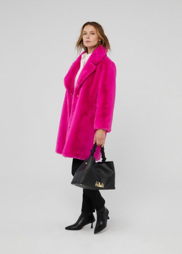 Chaqueta de pelo en color. Cuello solapa y bolsillos laterales. Cierre tipo snaps internos. Forro en animal print.