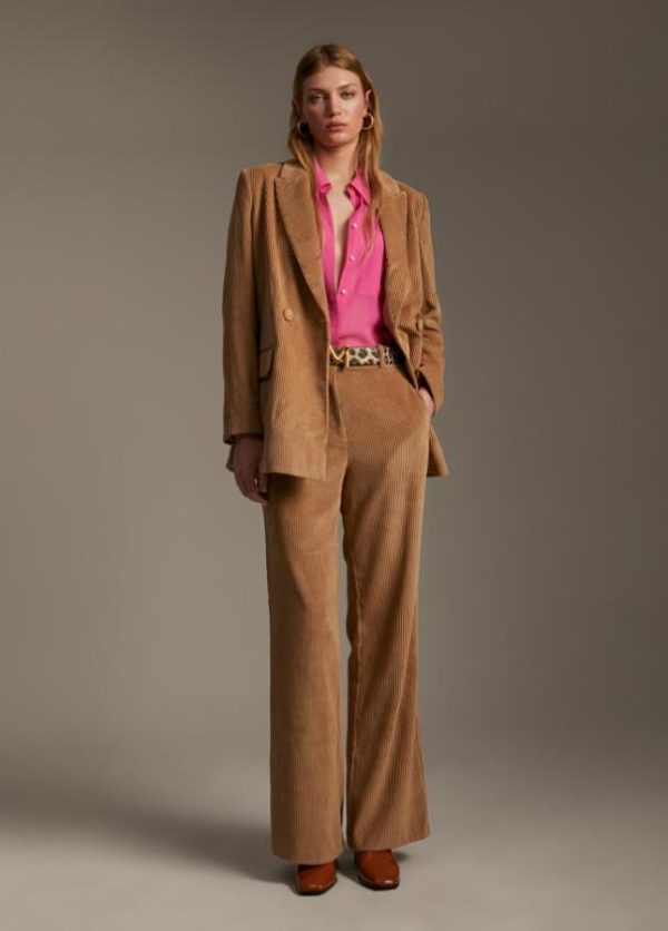 Americana oversize en efecto pana. Cuello solapa y manga larga. Bolsillos con tapete y cierre con botones en frontal.