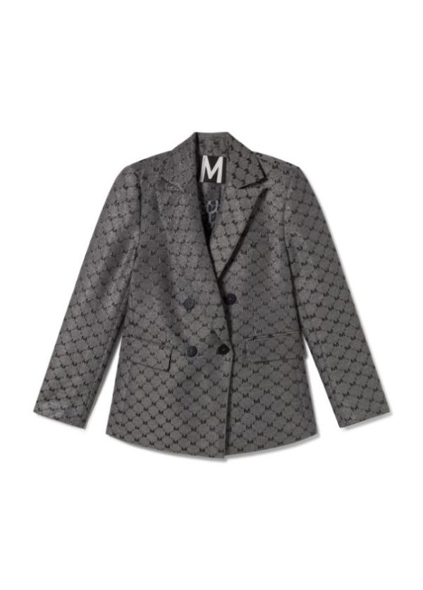 Blazer jacquard en monograma M bicolor en lúrex. Cuello solapa y cruzada con botones. Tapete de bolsillos en laterales.
