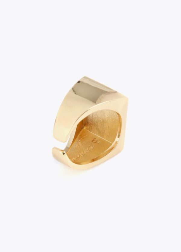 Anillo abierto tipo sello dorado con logo animal con detalles en color negro a contraste.