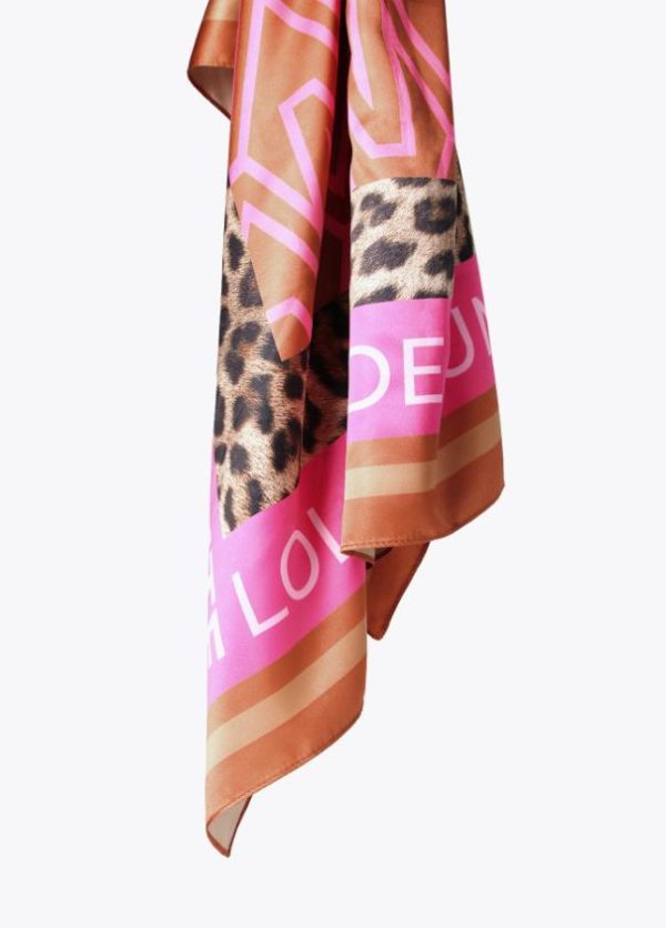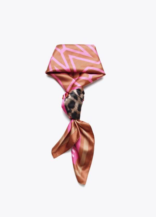Pañuelo satinado de mix de estampados con detalle de logo en bordes.