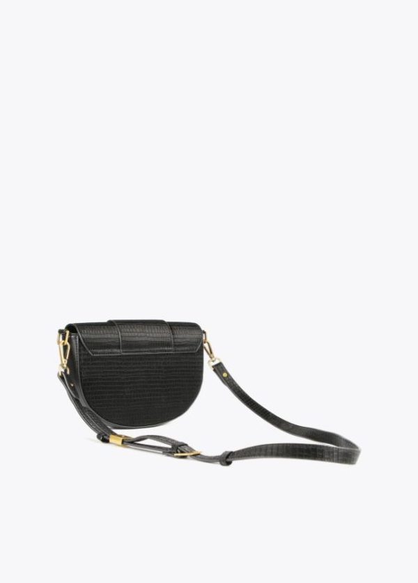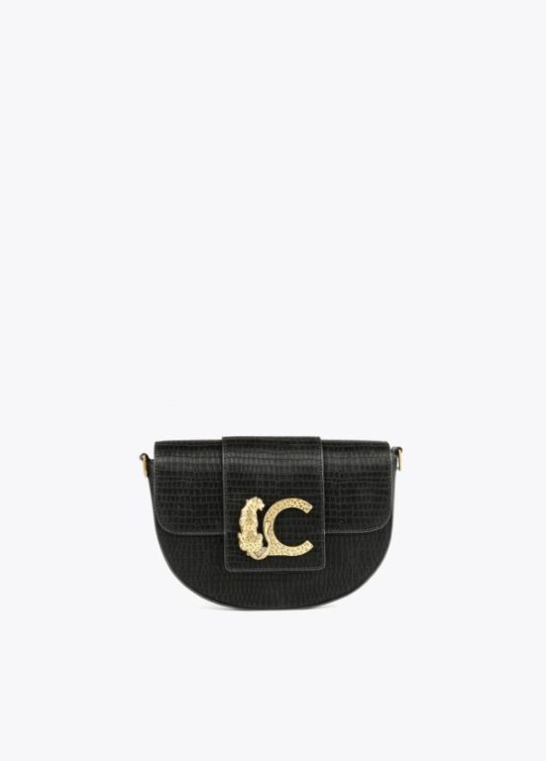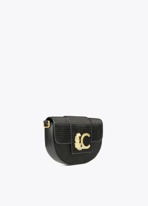 Bolso tipo bandolera en efecto piel cocodrilo. Cierre con botón imantado en solapa y maxi logo con animal dorado en zona frontal. Asa bandolera ajustable y extraíble.