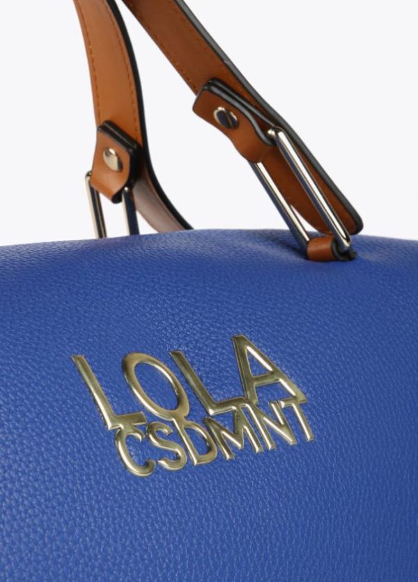 Bolso tipo maletín en efecto piel. Asas de mano y asa bandolera extraíble y regulable. Mega logo dorado en parte frontal y cierre con cremallera.