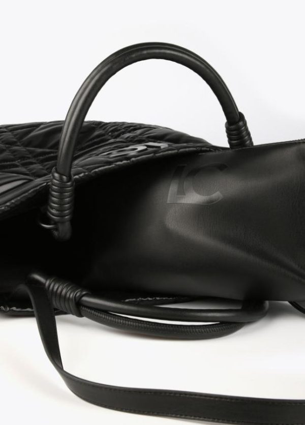 Bolso tipo shopper acolchado de nylon en efecto brillante y logo en parte frontal. Asas de hombro y asa bandolera y bolsito neceser interior con cremallera.