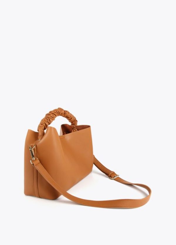 Bolso tipo shopper en efecto piel y asa de mano fruncida. Mega logo dorado en parte frontal. Asa bandolera ajustable y extraíble, bolsito neceser interior logotipado.