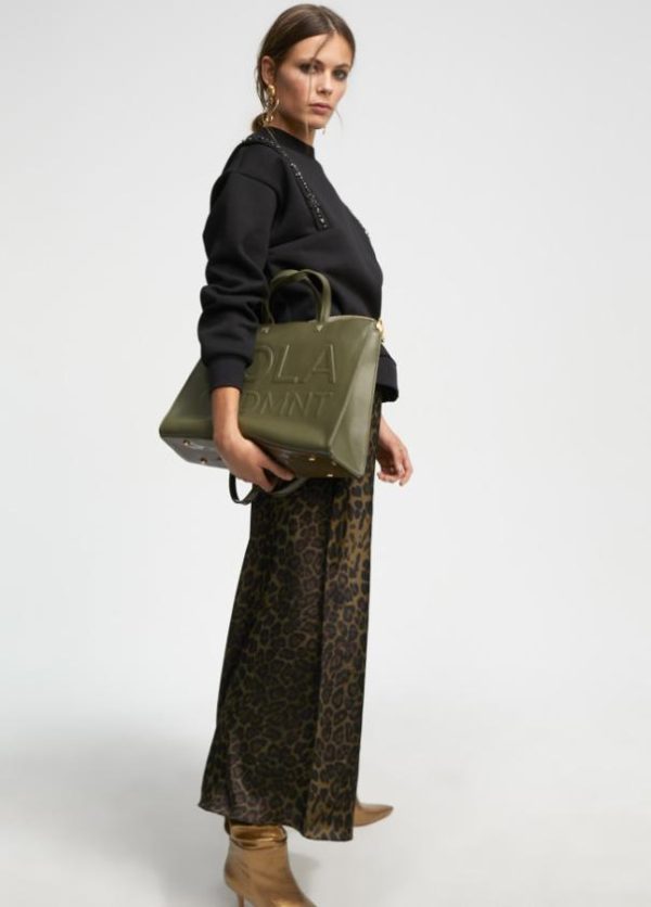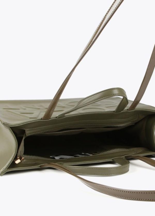 Bolso tipo shopper con mega logo en relieve en parte frontal. Asas de mano, asa bandolera y cierre de cremallera.