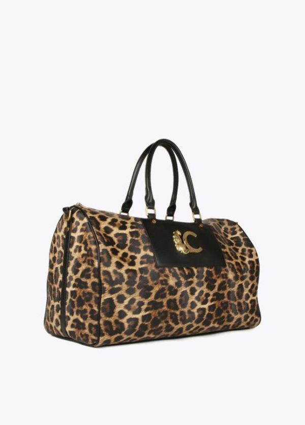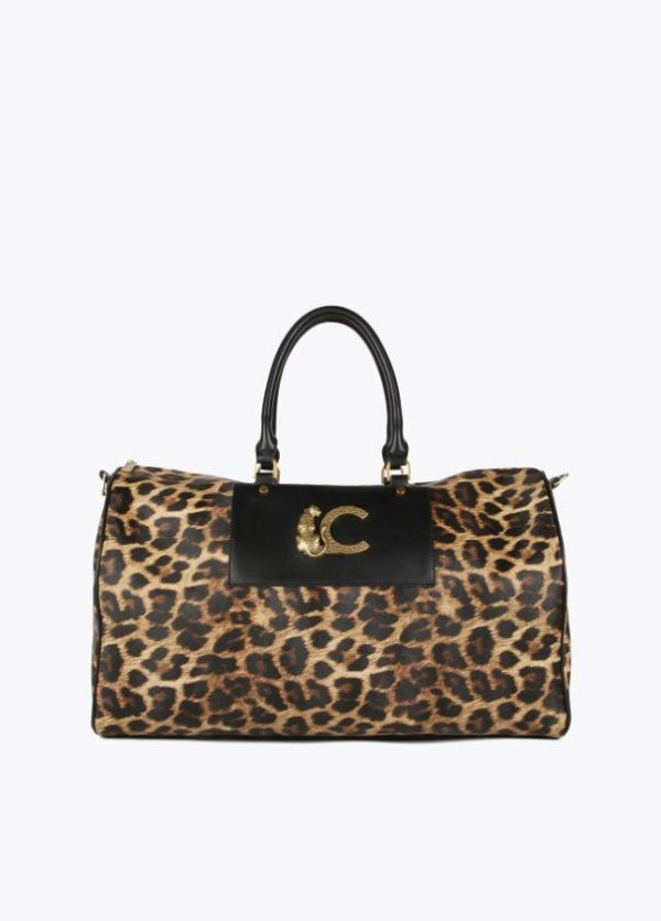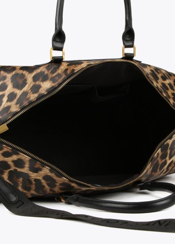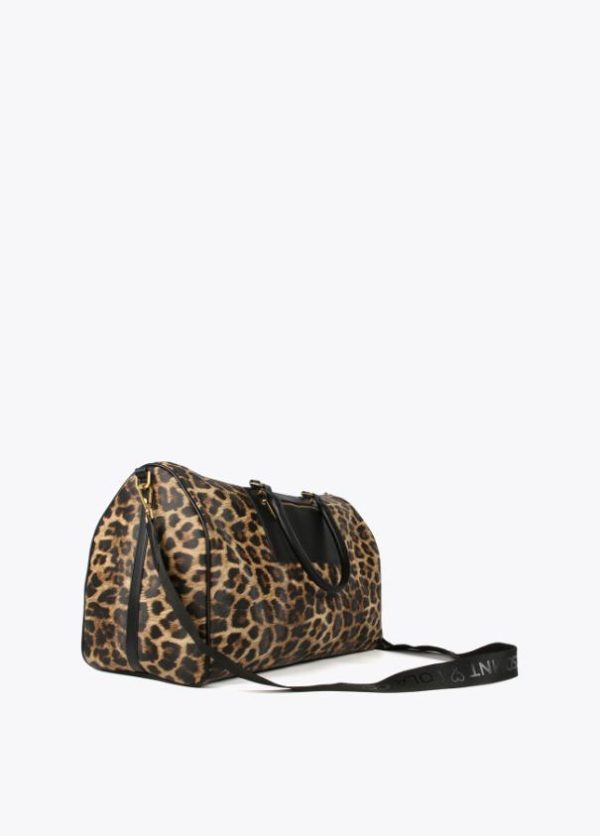 Weekend en efecto piel y estampado animal con logo animal dorado en parte frontal. Asas de mano, asa bandolera logotipada extraíble y cierre de cremallera.