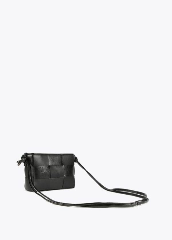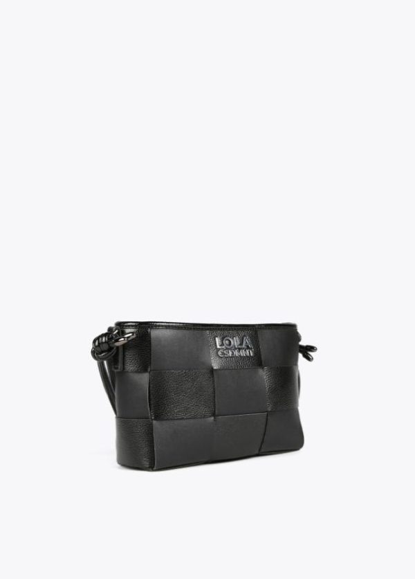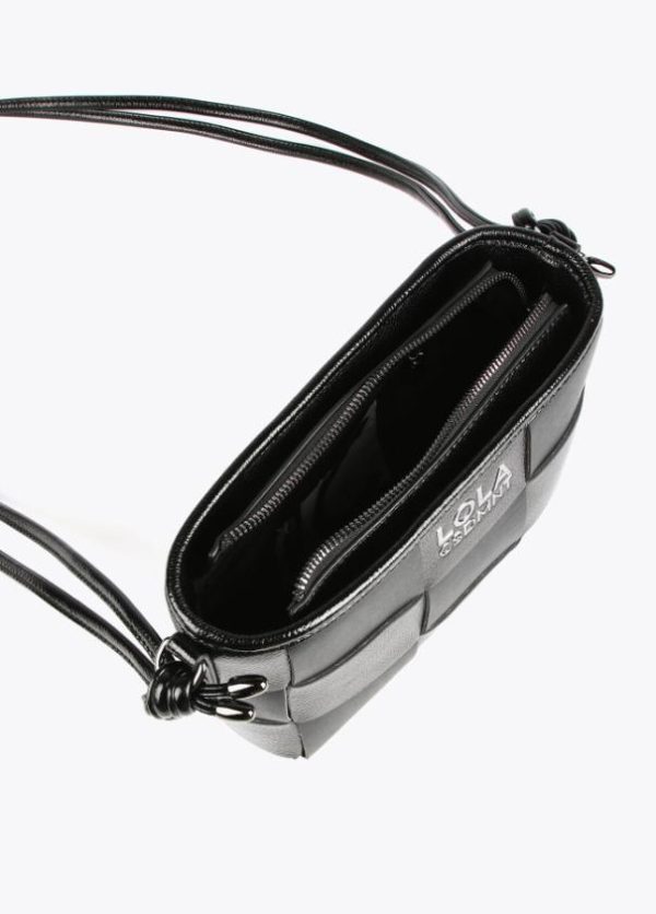 Bolso tipo bandolera trenzada en efecto piel y logotipo grabado en parte frontal. Asas de mano y asa bandolera extraíble. Cierre con cremallera.