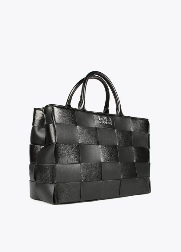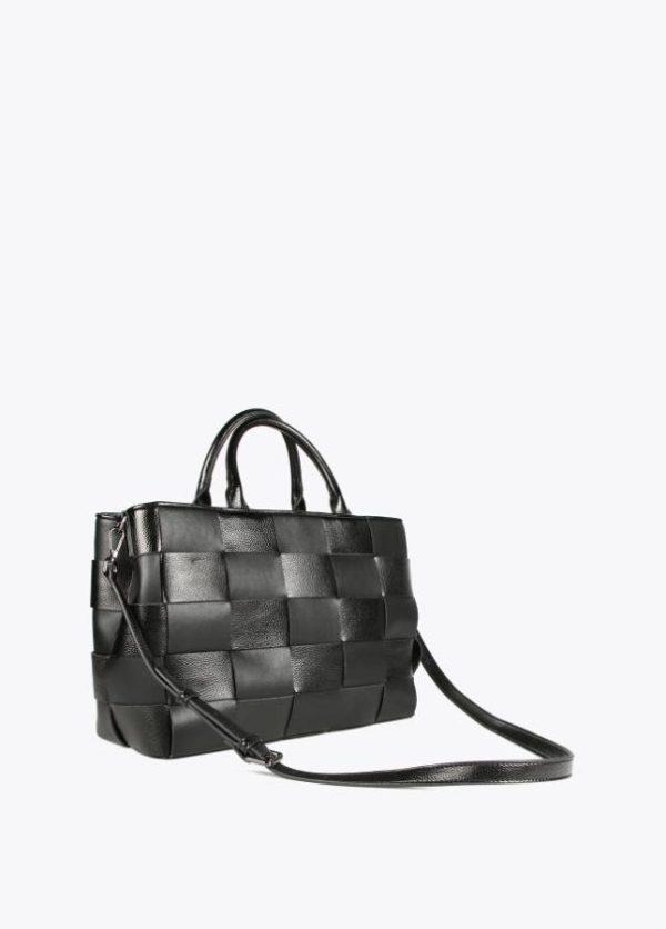 Bolso tipo shopper trenzado en efecto piel y logotipo grabado en parte frontal. Asas de mano y asa bandolera extraíble. Cierre con cremallera.