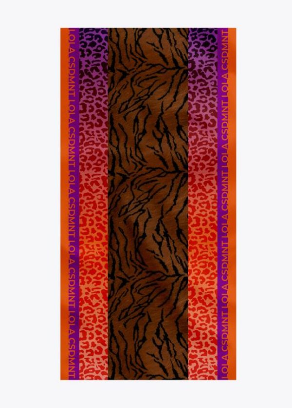 Fular logotipado con diferentes estampados animal combinados.