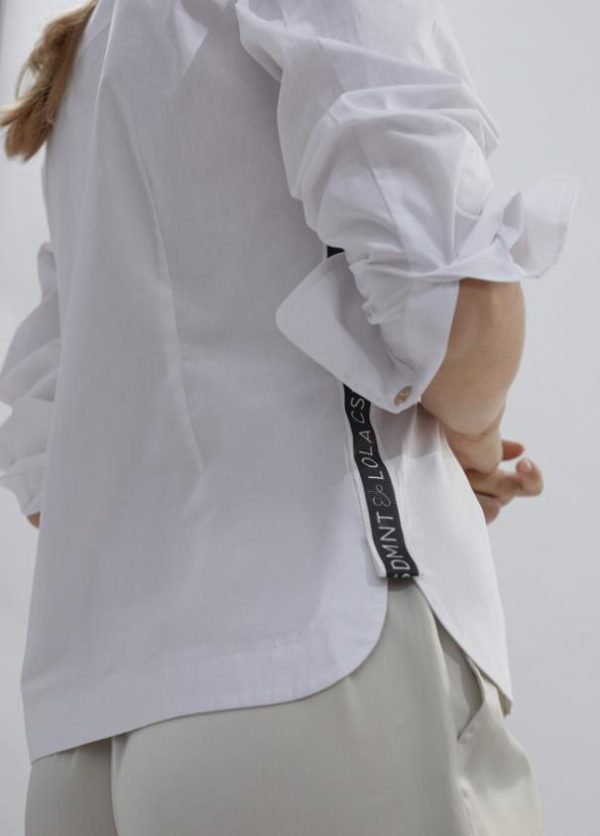 Camisa con cuello y puños camiseros. Botones dorados y listada lateral logotipada a contraste.