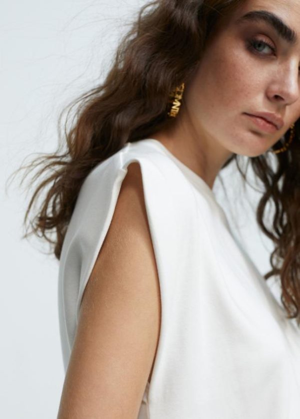 Camiseta cuello caja y manga caída. Detalle de logo bordado a tono.