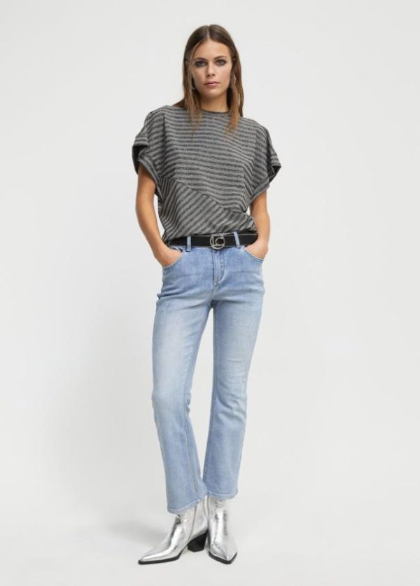 Camiseta de cuello caja y manga sisa de rayas bicolor bidireccionales con hilatura de lúrex.