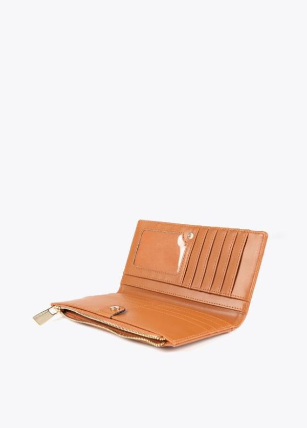 Billetero grande con logotipo troquelado. Cierre con cremallera en monedero y cierre con botón clic en zona tarjetero.