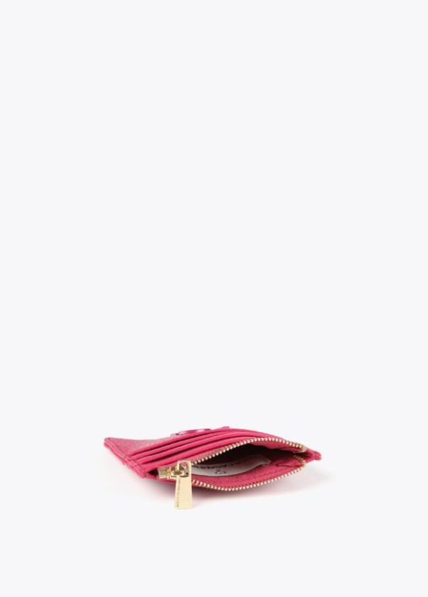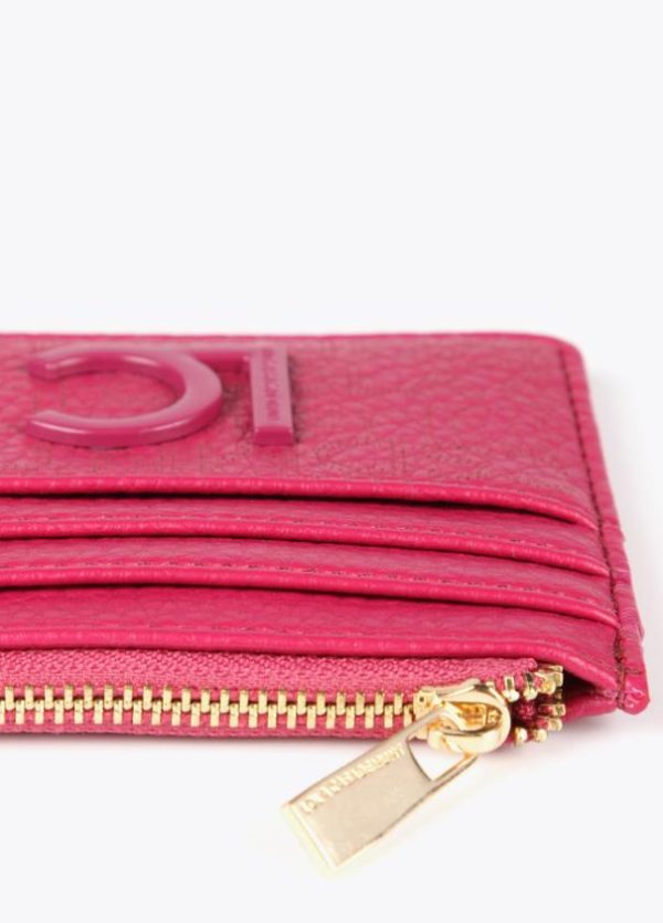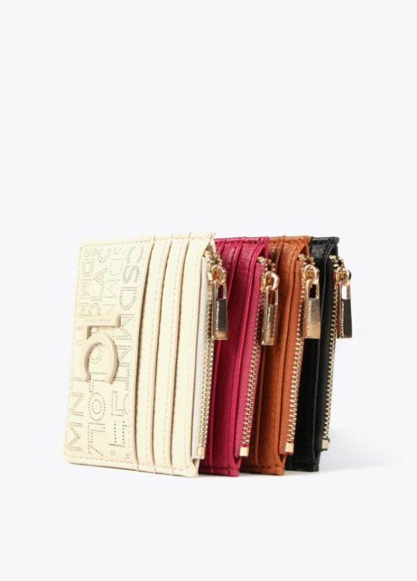 Tarjetero troquelado en diferentes colores. Cierre con cremallera para monedas y logo lacado en parte frontal.