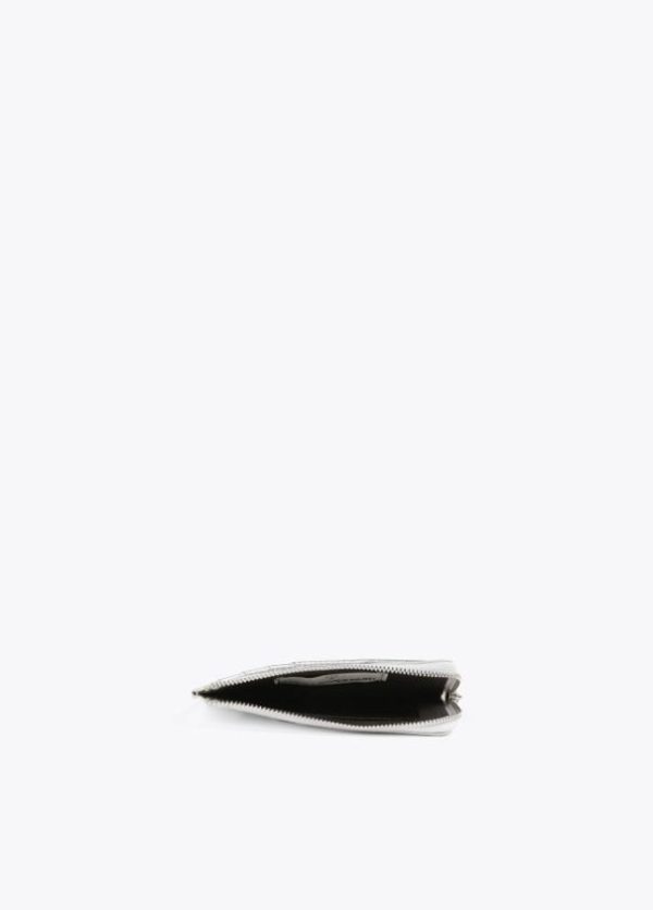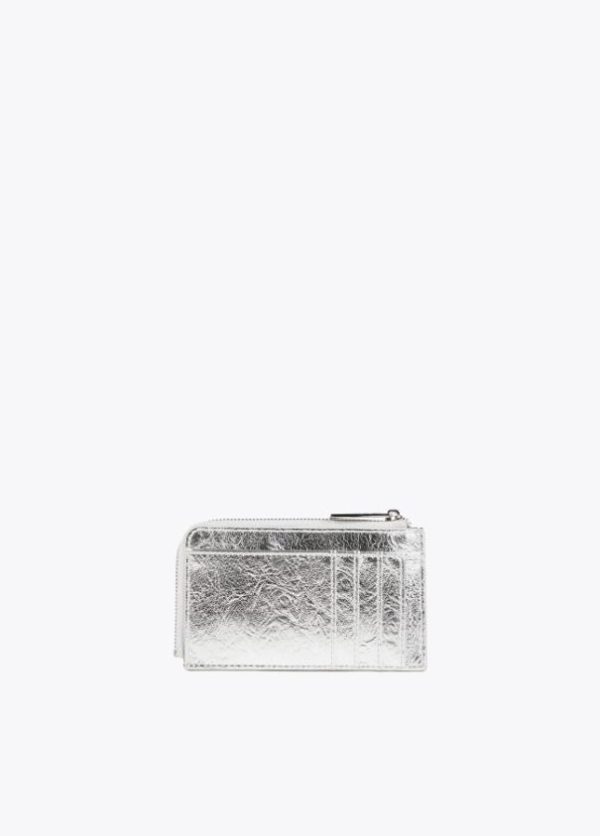 Tarjetero metalizado. Cierre con cremallera para monedas y logo grabado en parte frontal.