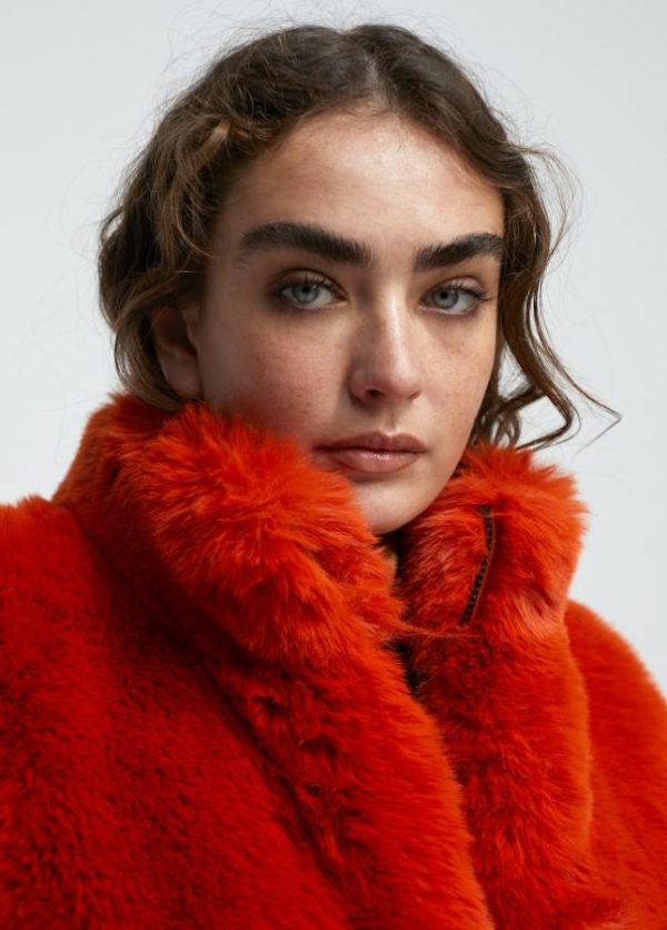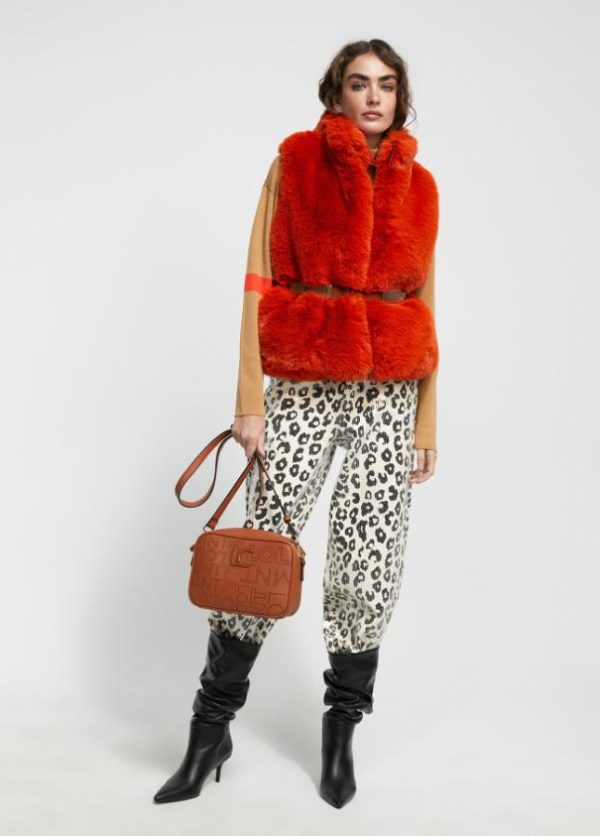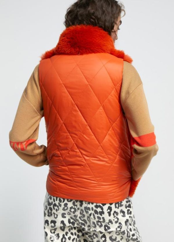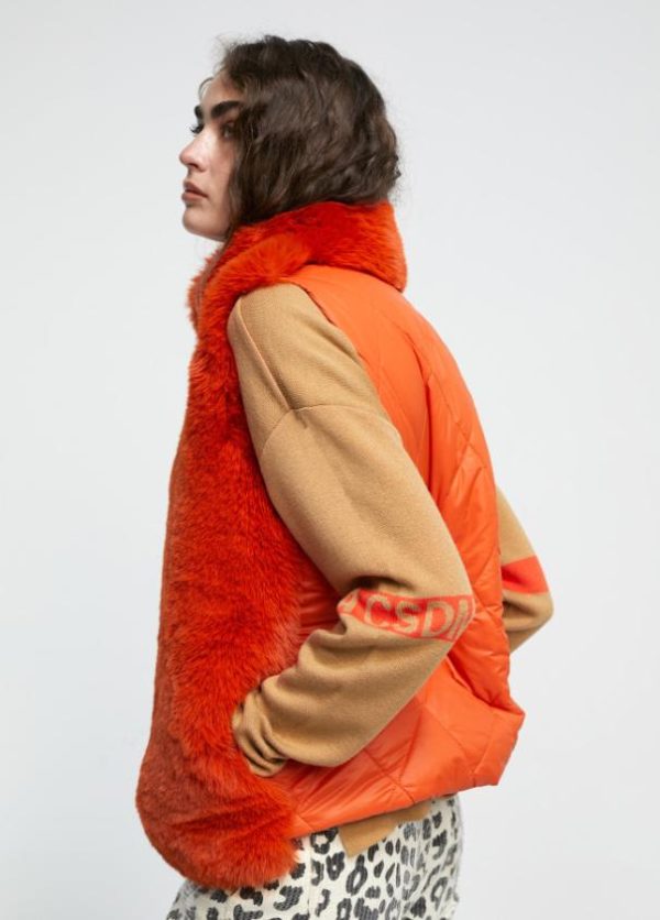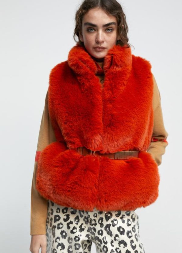 Chaleco corto de pelo. Cierre con cremallera de doble carro y bolsillos laterales.