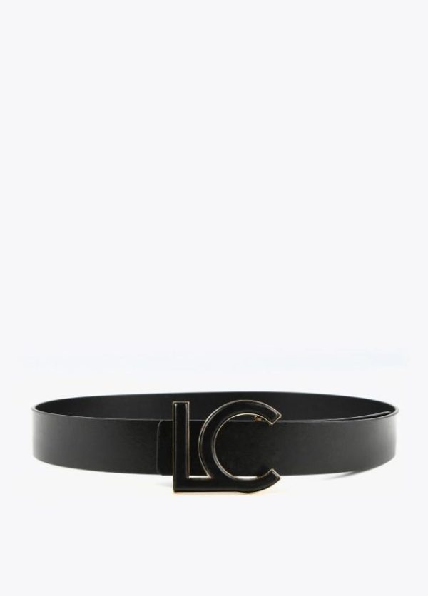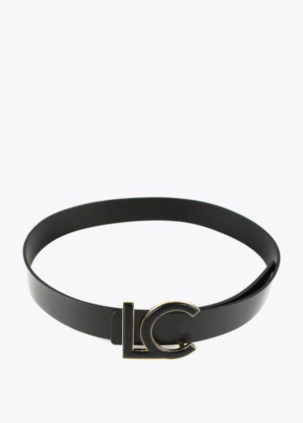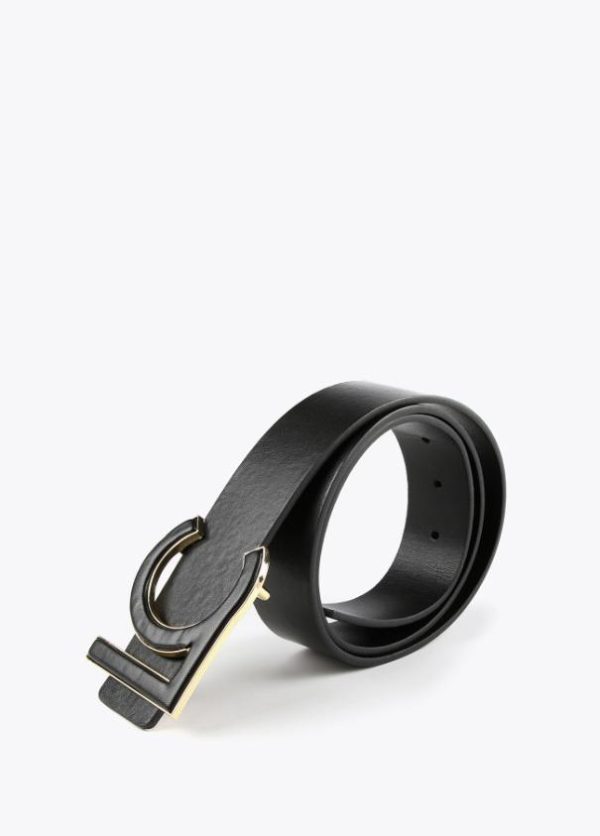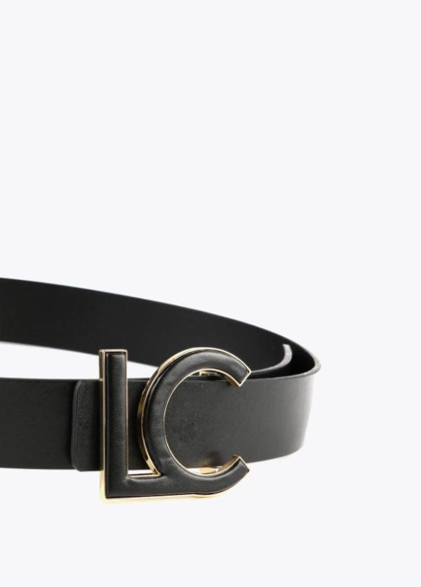 Cinturón efecto piel con letras logo forradas en efecto piel a modo hebilla.