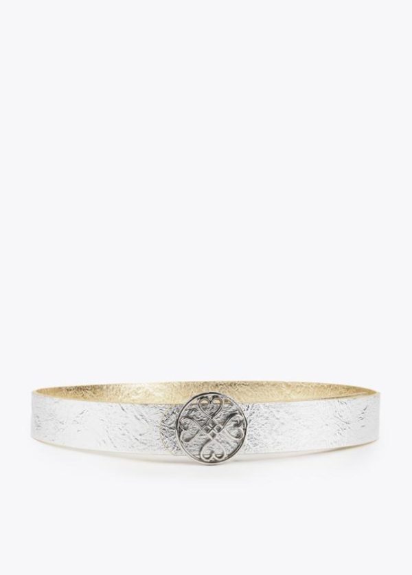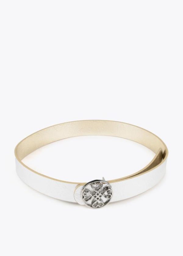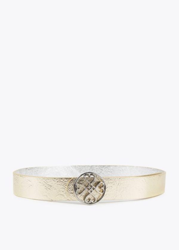 Cinturón reversible en efecto piel con hebilla dorada con corazones infinitos.