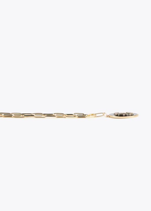 Collar dorado con eslabones y medalla colgante con logo animal. Cierre ajustable.