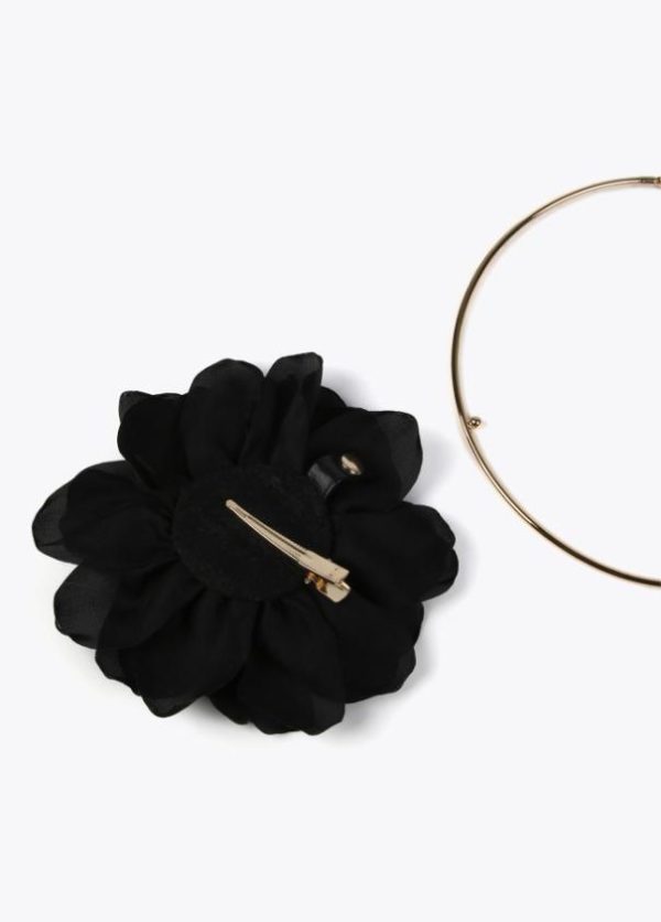 Collar de aro rígido dorado con colgante maxi flor extraible y convertible en adorno.