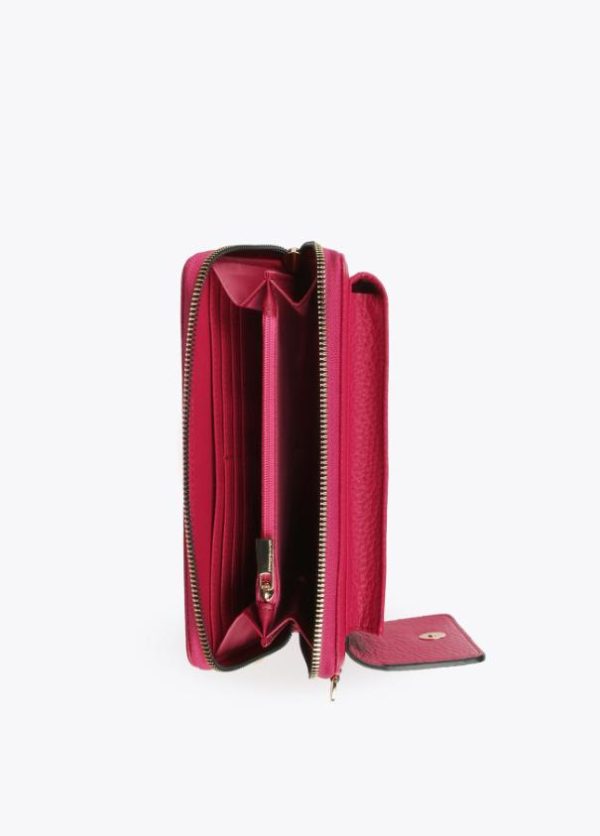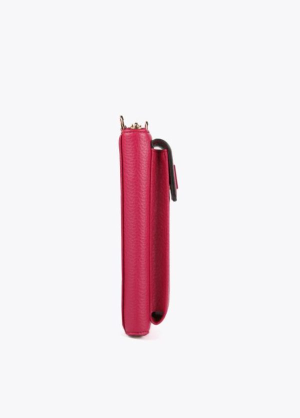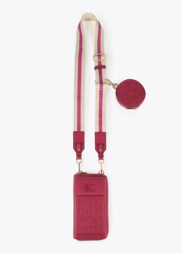 Monedero y bolsito para el móvil con logotipo troquelado y asa bandolera ajustable y extraíble. Detalle monedero en asa bandolera.