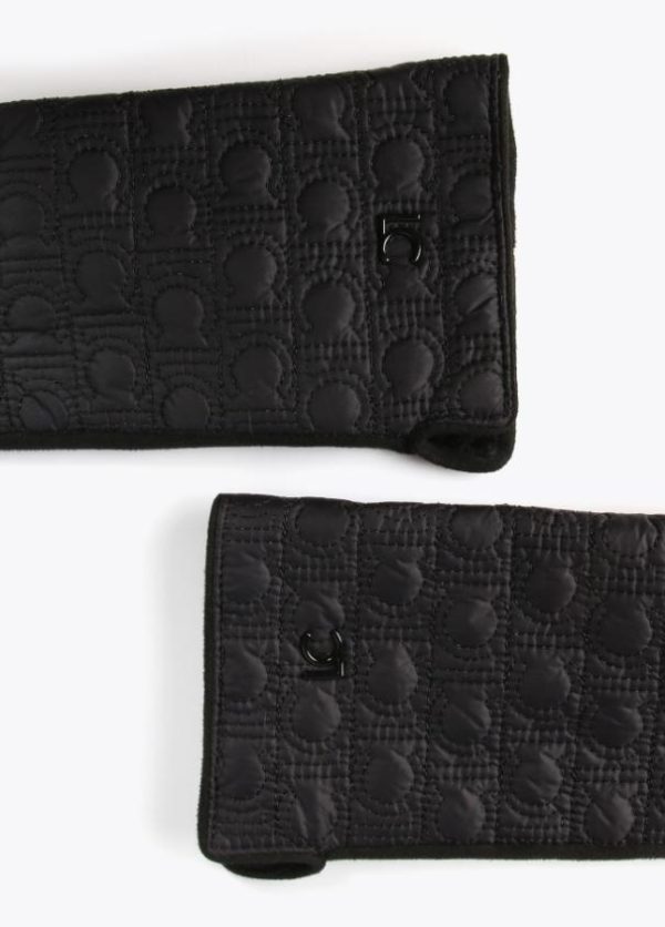 Guantes acolchados de nylon con monograma bordado y letras logo lacadas en parte superior.