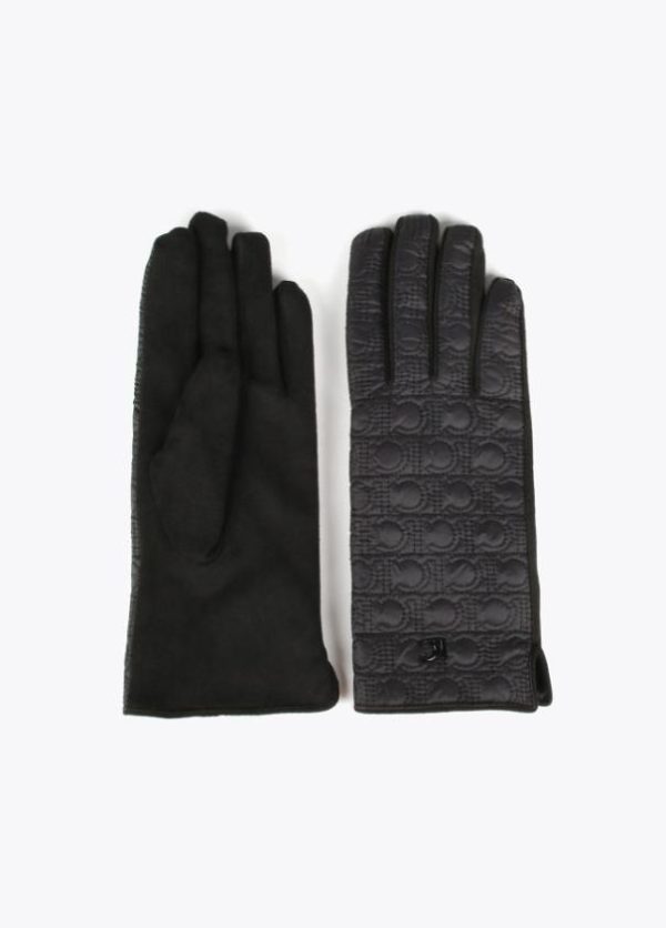 Guantes acolchados de nylon con monograma bordado y letras logo lacadas en parte superior.