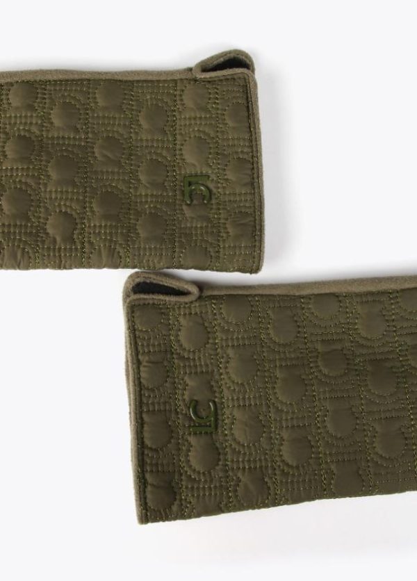 Guantes acolchados de nylon con monograma bordado y letras logo lacadas en parte superior.