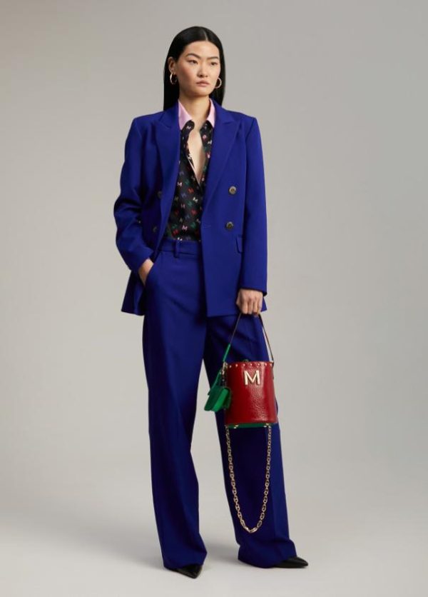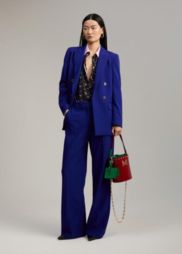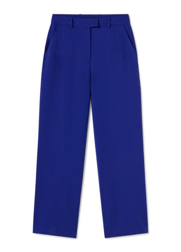 Pantalón recto de traje con bolsillos laterales. Cerrado con cremallera frontal y ganchos metálicos en interior. Detalle de tapete en falso bolsillo trasero.