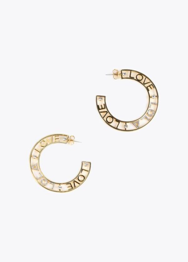 Pendientes de aro abierto y plano con letras Lola love y detalle piedras brillantes.