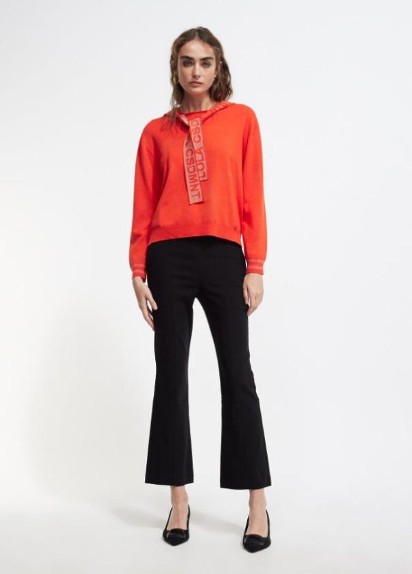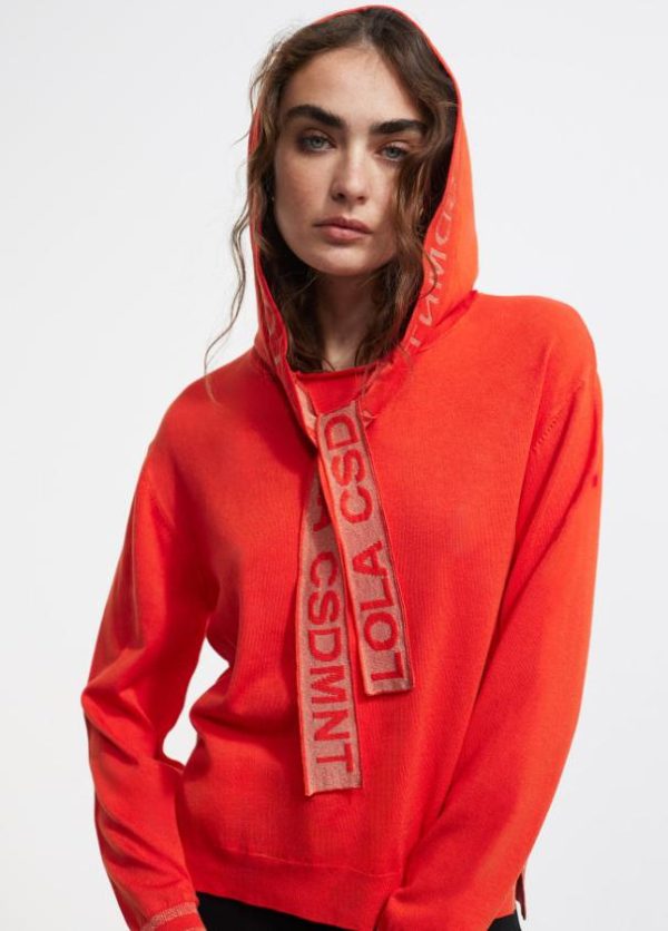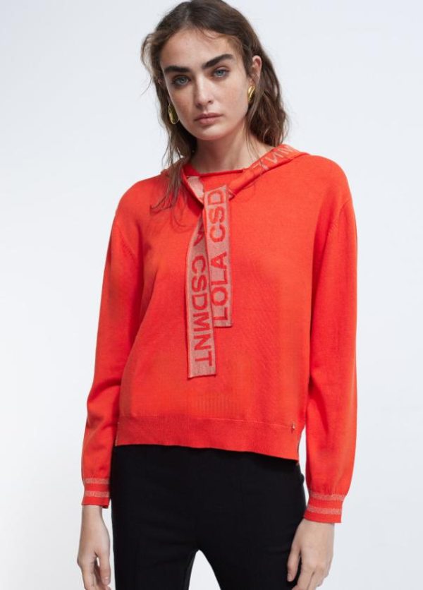Jersey de punto con capucha. Detalle en lazo y capucha de logo en lúrex bicolor.