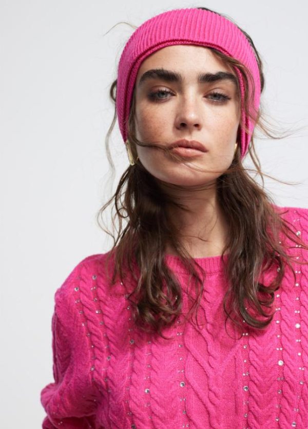 Jersey de puto con cuello extraíble. Detalle frontal de trenzado con strass contrastado.