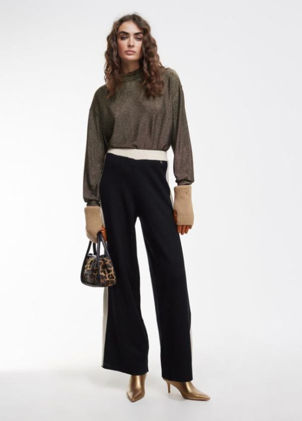 Jersey en punto de lúrex. Cuello perkins. Puños ajustados y abertura corta en espalda.