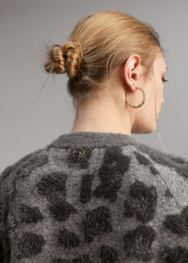 Jersey de punto en cuello caja y manga larga. Estampado en fantasía animal print bicolor.