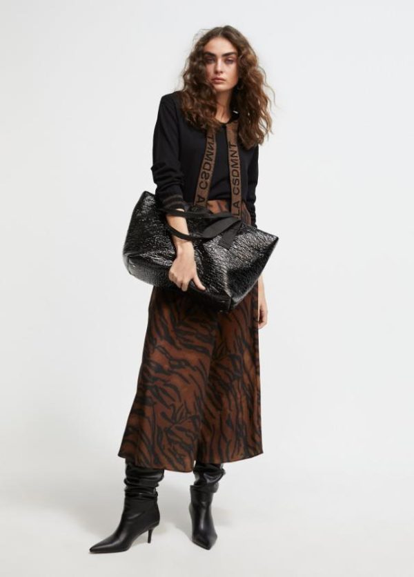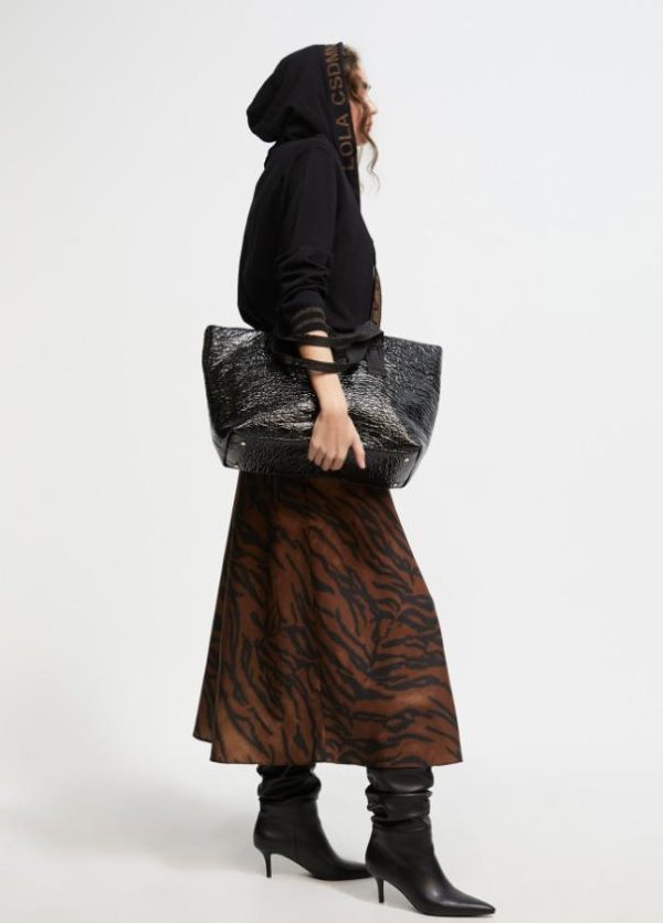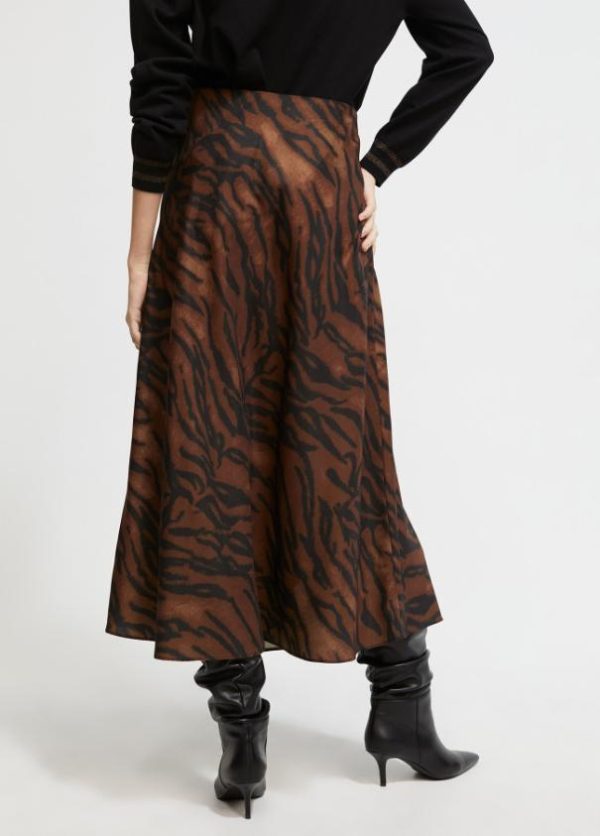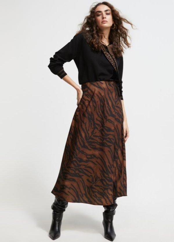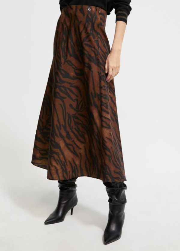 Falda de largo midi. Estampado en animal print bicolor. Cremallera lateral.