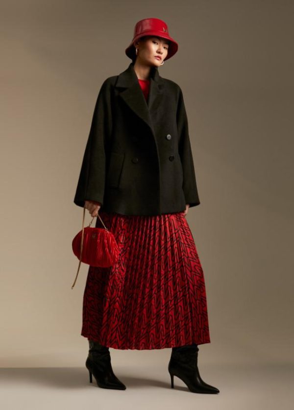 Falda de largo midi plisada. Estampado monograma M bicolor. Cintura elástica.