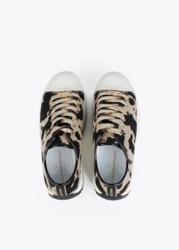 Zapatilla deportiva tipo bamba de estampado animal. Suela ancha dentada de 6,5cm. Cierre frontal mediante cordones y detalles de logo en laterales y parte trasera.